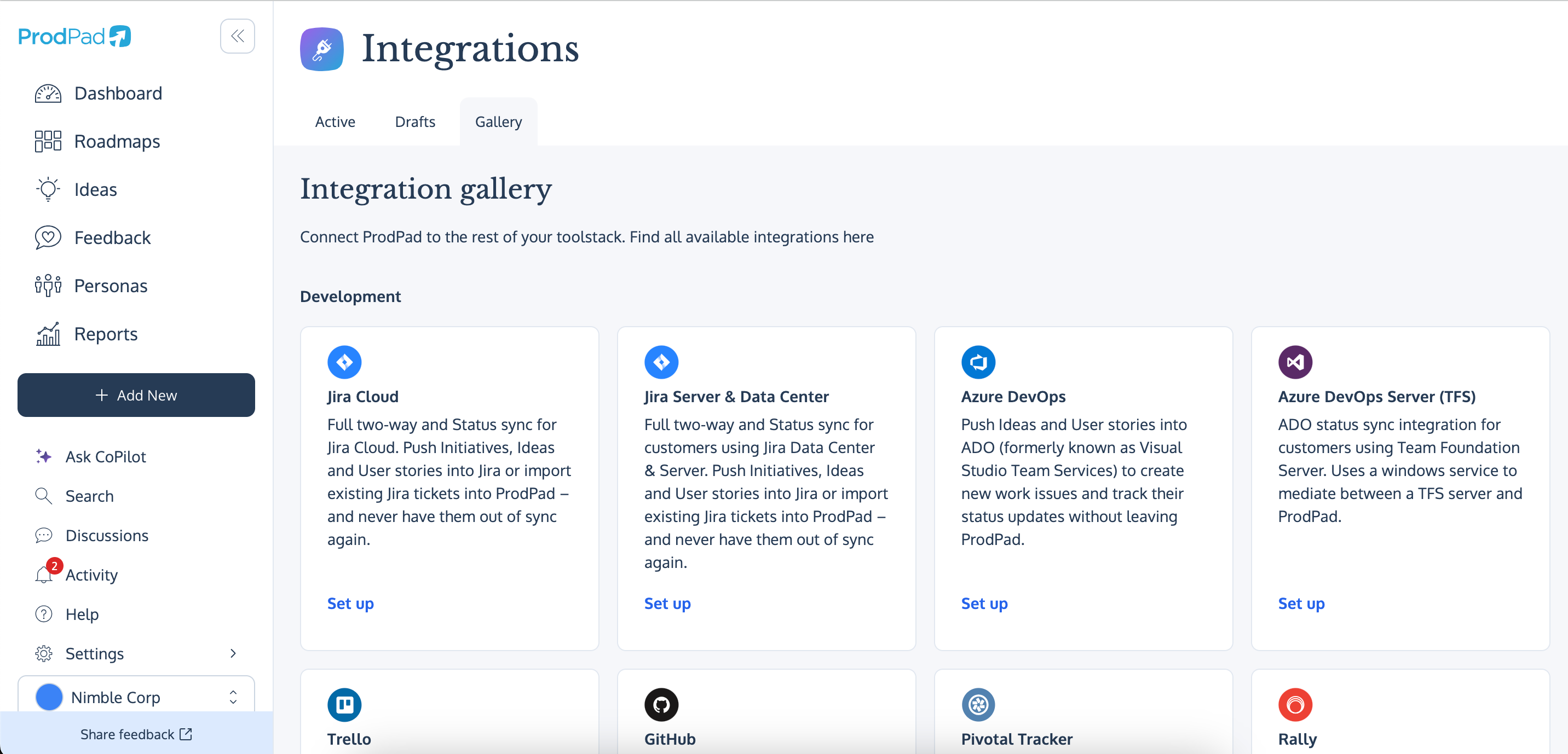 From now on, any changes to the linked work item's status in Jira will automatically update the Idea workflow stage in ProdPad – such Ideas will be marked with a blue banner with a Jira logo on it.